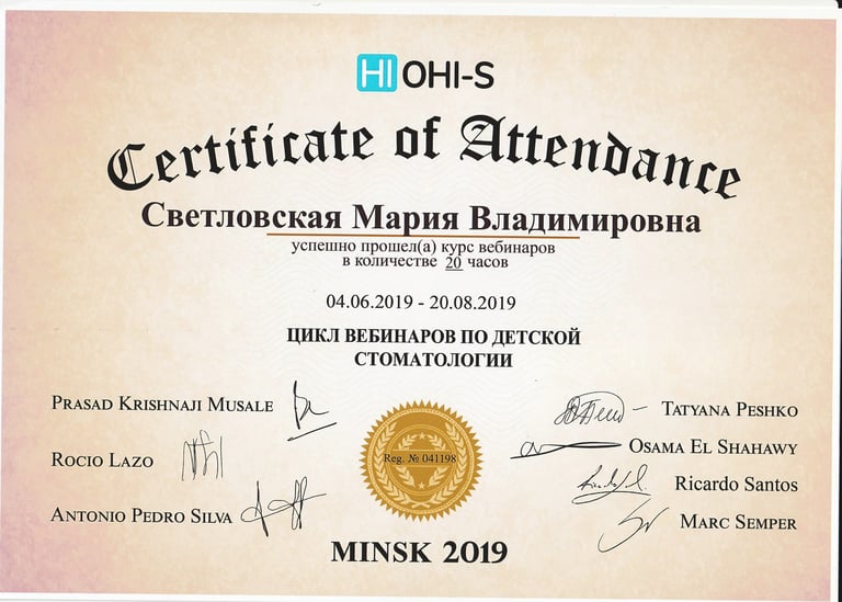 Сертифікат. Цикл вебінарів з дитячої стоматології