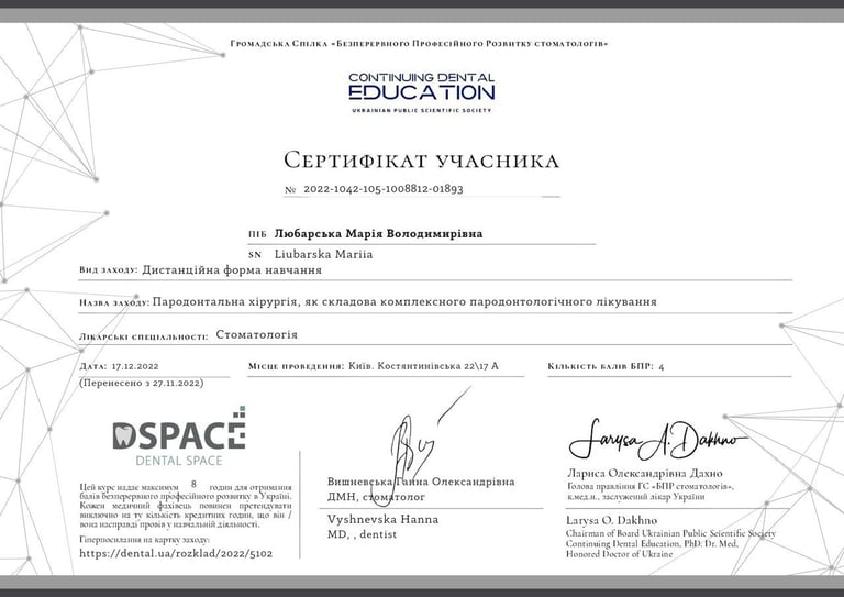 Сертифікат. Пародонтальна хірургія, як складова комплексного пародонтологічного лікування